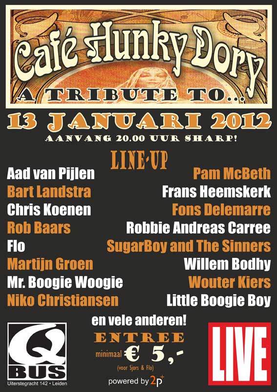 | Tot 2012 spelelde Men in Blues in Hunky Dory, nadat Sus Antigoon stopte. Maar.....Hunky Dory is niet meer.....Het gezellige muziekcafe in het centrum van Leiden is gestopt. |